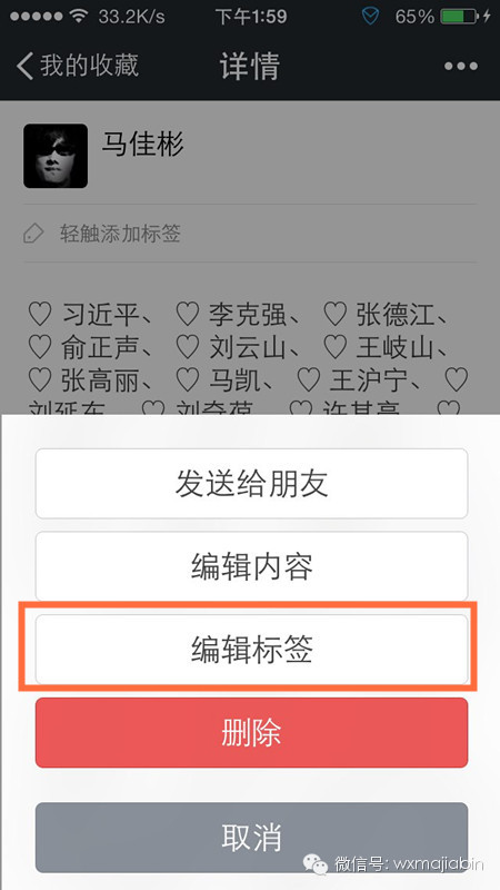 给收藏的内容添加标签只是为了方便搜索,当你收藏的内容特别多的情况下,这个功能还是挺实用的。如图所示: