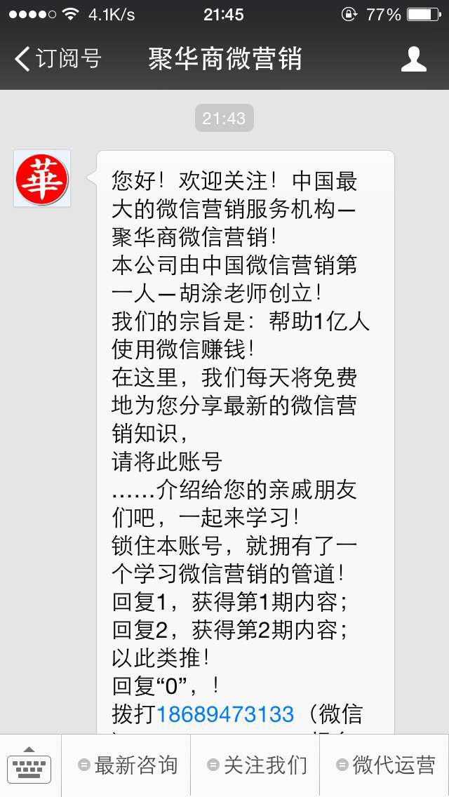 【老马的公司是一家企业微信营销全案服务公司,承接各种微信开发、策划、代运营。如果您有需求,请致电:020-38678675】