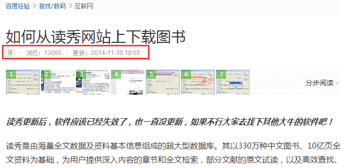 百度经验上好的文章浏览量过百万的很多,也就是说一篇软文经验文章,关键词选好,引流点埋好,其流量可谓是源源不断的。做这个事情也是需要持之以恒才方得始终的,不要今天发一两篇,明天就不接着发了。只有经常去操作才熟能生巧,所有的网络营销大师凡是大而全的基本都学艺不精,凡是专注某一个领域平台的那才是高手中的高手。