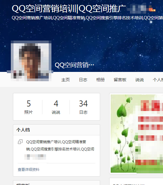 选择好关键词后,我们就确定这个关键词为主关键词。老马是建议你一个QQ空间只做一个主关键词。比如你注册个新的QQ号,开通了QQ空间,准备做一个“燕郊房地产”的主关键词。然后,你想做另外一个主关键词“燕郊一手房”,那就再申请一个新的QQ号,再开通一个QQ空间。开通了QQ空间之后,你需要做的就是把QQ空间里面的名称、签名等都加上你要做的主关键词。这样是方便百度收录,同时加上一些跟主关键词同义的关键词。
