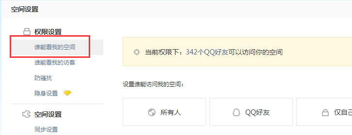好了,最后补充一步。假设你的QQ空间已经被百度收录了,排名也在首页比较靠前的位置。那么,一个普通的网民想要进你的空间,你是不是要进行一些权限的设置呢?比如,允许任何人都能进你的空间。QQ空间的访问权限是要打开的,不像我们个人用的QQ空间,生怕某些陌生人看到里面的隐私。所以,老马建议你开放QQ空间,让客户进来能够看到你的广告空间日志。如下图所示: