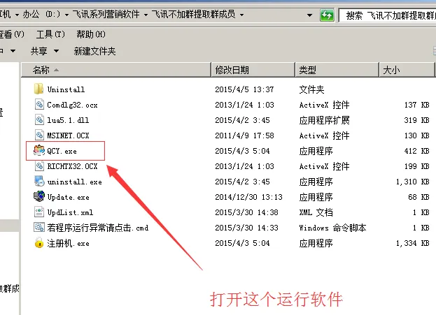OK,覆盖成功了之后,下面就是在软件安装的文件夹里面,打开QCY.exe 来运行一下软件(切记,不是在老马给你的软件压缩包里面打开这个文件,而是在你已经成功安装在了D盘里面的软件的安装文件夹里面打开)。如图所示: