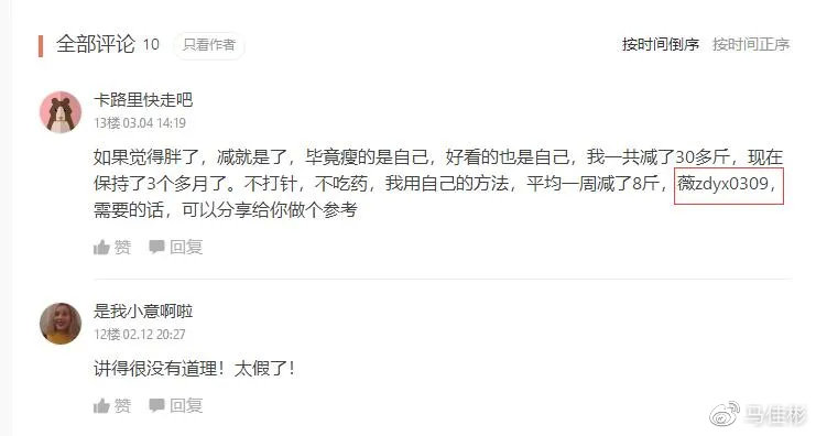 然后评论第一位就是一段引流的文案,也留了微信号,只不过用其它词替代了微信,如图所示: