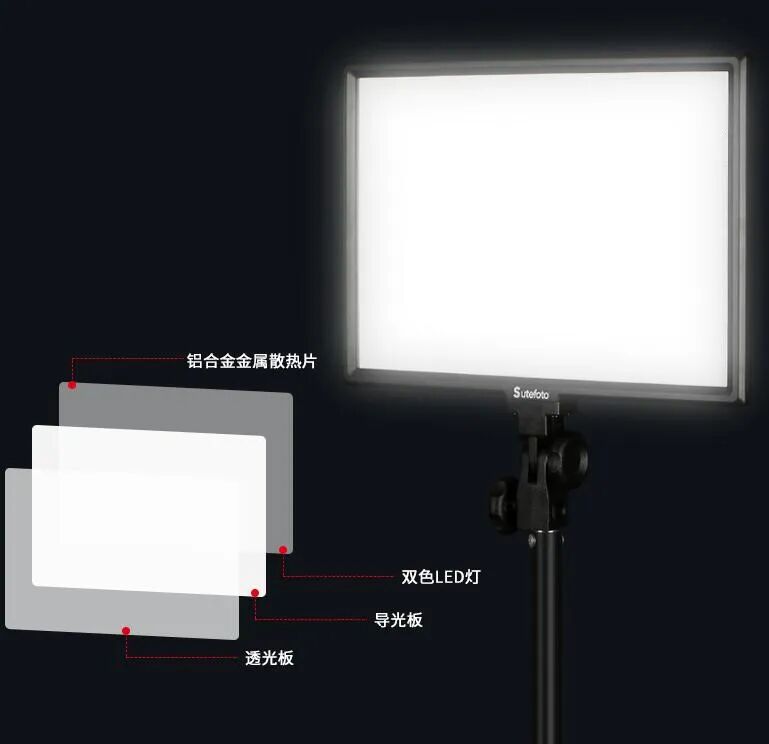 类似的平板型的补光灯也有更大尺寸一些的,可以安装在落地支架上,其它功能与便携式的差不多,这种产品可以作为主光、或者侧光使用,如图: