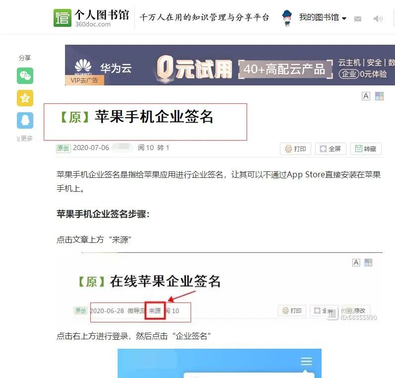 这个人就是在推广自己的网站,在360个人图书馆发布的每一篇文章都是一样的格式,最多改改文字,整篇文章也才几百字左右,老马标红框那里,就是它发布文章时插入了来源链接,然后又在文章中提醒阅读的人点来源,一点来源就跳转到他自己的网站。
