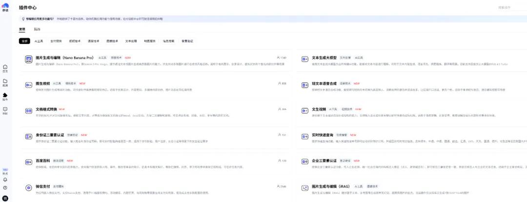 登录之后,我们在左侧菜单点击插件,就可以看到刚才老马说的Nano Banana Pro,如图: