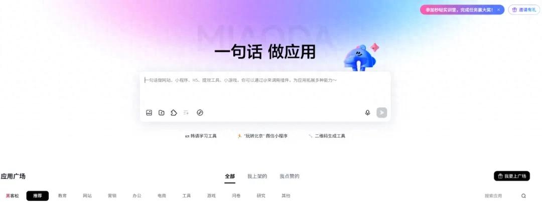秒哒作为一个无代码的AI应用生成平台,一句话就可以生成各种全栈应用,支持前后端。